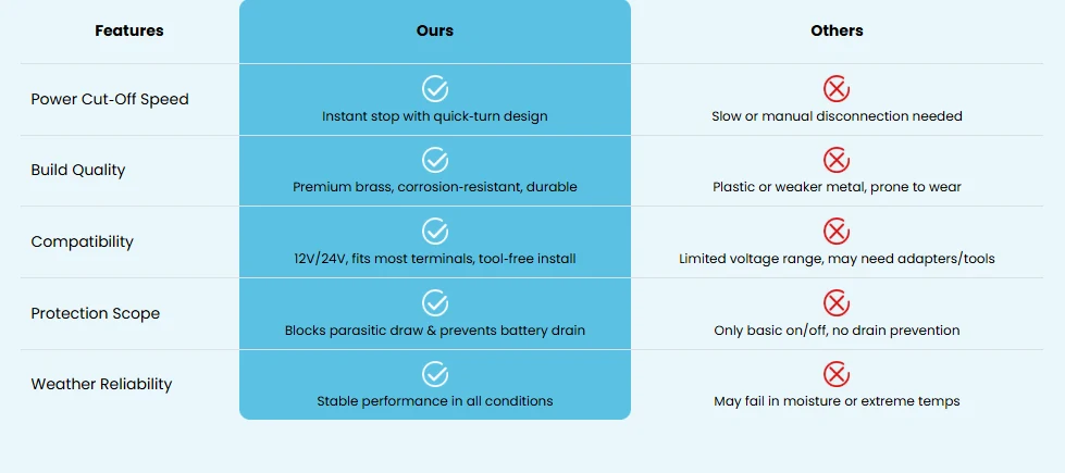 To deal with this, many vehicle owners turn to a simple solution: a brass battery cutoff switch. With a quick twist, it completely interrupts the power flow, helping prevent unnecessary battery drain while the vehicle is parked.